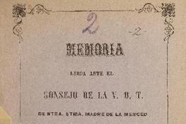 Memorias leida ante el consejo de la V. O. T. de Ntra. Stma. Madre de la Merced por el secretario en sesión del 6 de octubre del presente año V. Gonzalez Pastene.