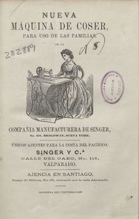 Nueva máquina de coser : para uso de las familias / de la Compañia Manufacturera de Singer. [Valparaíso] : Impr. del Universo, [1872?] 8 p. ; 20 cm. .