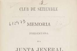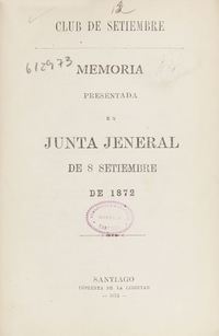 Memoria / Club de Setiembre. Santiago : Imprenta de La Libertad, 1872- volúmenes ; 22 cm. .