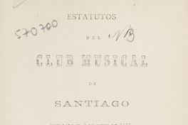 Estatutos / del Club Musical de Santiago. Santiago : Impr. de La Libertad, 1872 19 p. ; 22 cm. .