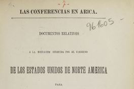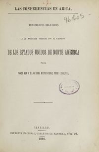 Documentos relativos a la mediación ofrecida por el gobierno de los Estados Unidos de Norte América para poner fin a la guerra entre Chile, Perú i Bolivia : Las conferencias en Arica. Santiago : Imprenta Nacional, 1880. 35 páginas; 22 cm. .