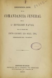 Correspondencia jeneral de la Comandancia Jeneral de la 1a. División Naval, bajo el mando del Contra-Almirante don Miguel Grau, Comandante del "Huascar". Santiago de Chile : Imprenta de la Librería del Mercurio, 1880. 135 páginas ; 26 cm. .