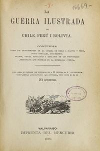 La guerra ilustrada de Chile, Perú y Bolivia / José Joaquín Larraín Zañartu, Nicolás Peña Vicuña. Valparaíso : Imprenta del Mercurio, 1879. 128 páginas: ilustraciones ; 23 páginas .
