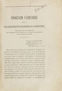 Oración fúnebre : por los chilenos muertos en Chorrillos i Miraflores / predicada por el presbiterio Don Esteban Muñoz Donoso [s.l. : s.n], 1881. 37 páginas; 23 páginas. .