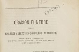 Oración fúnebre : por los chilenos muertos en Chorrillos i Miraflores predicada por el presbiterio Don Esteban Muñoz Donoso