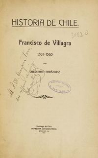 Historia de Chile : Francisco de Villagra : 1561-1563 / por Crescente Errázuriz. Santiago de Chile : Imprenta Universitaria, 1915 xi, 538 páginas ; 24 cm .
