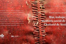 Entre la tradición y devenir : Mar, trabajo y memoria social de Caleta Chañaral de Aceituno / Daniel Aguilera, [y otros] ; fotografías: Javier Valdés Larrondo, Francis Pérez, Valeria Portus. Santiago : Consejo Nacional de la Cultura y las Artes ; Museo Regional de Atacama, 2017 (Santiago : Andros Impresores) 95 páginas : ilustraciones en color, mapa ; 20 x 22 cm. .