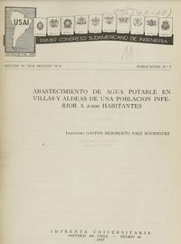 Abastecimiento de agua potable en villas y aldeas de una población inferior a 2.000 habitantes / Gastón Heriberto Paez Rodríguez. Santiago : Impr. Universitaria, 1939. 17 p. ; 26 cm. .