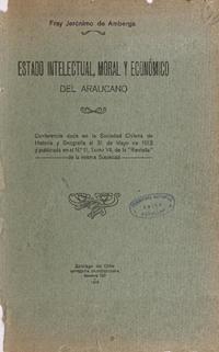 Estado intelectual, moral y economico del araucano / Jerónimo de Amberga. Santiago de Chile : Imprenta Universitaria, 1913 37 páginas ; 25 cm .