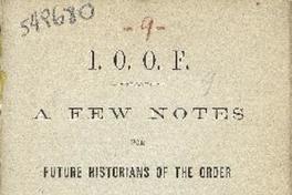 A few notes for future historian of the order in Chile / by William J. Cox. Valparaíso : Patria Printing Office, 1876. 16 p. ; 17 cm. .