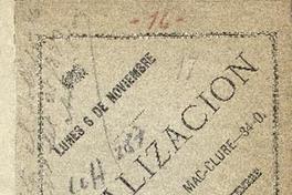 Realización : lunes 6 de noviembre / Portal Mac-Clure. Santiago : Portal Mac-Clure, 1876. Santiago de Chile : Imprenta de La Estrella de Chile, 1876. 22 páginas ; 17 cm. .