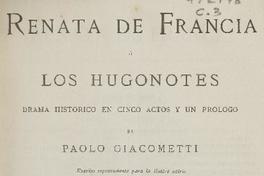 Renata de Francia, ó, Los Hugonotes : drama en cinco actos y un prólogo de Paolo Giacometti.