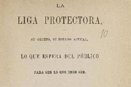 La liga protectora, su objetivo, su estado actual, lo que espera del público para ser lo que debe ser / Abel Saavedra B. Santiago : Imprenta La República, 1874 11 páginas ; 22 cm. .