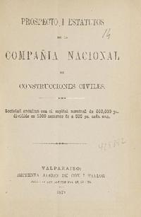 Prospecto i estatutos / Compañía Nacional de Construcciones Civiles. Valparaíso : Imprenta Albion, 1871. 16 páginas ; 21 cm. .