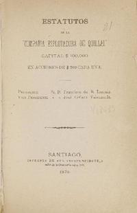 Estatutos / de la Compañía Esplotadora de Quillai. Santiago : Imprenta El Independiente, 1873. 15 páginas ; 22 cm. .