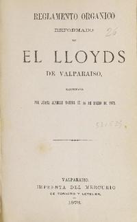 Reglamento orgánico reformado de El Lloyds de Valparaíso : sancionado por junta jeneral habida el 13 de Mayo de 1862. Valparaíso : Imprenta del Universo, 1862. 14 páginas ; 22 cm. .