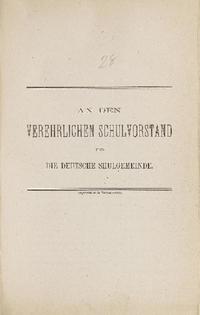 An den verehrlichen schulvorstand und die Deutsche schulgemeinde.