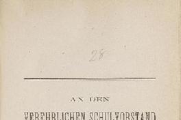 An den verehrlichen schulvorstand und die Deutsche schulgemeinde. [S.l.] : Imprenta La Patria, 1874 8 páginas ; 22 cm. .