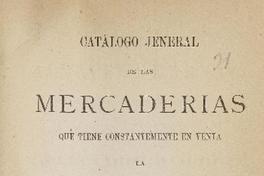 Catálogo jeneral de las mercaderías que tiene constantemente en venta : la casa de Julio Gévelat en Valparaíso, calle de San Juan de Dios, nº 181.