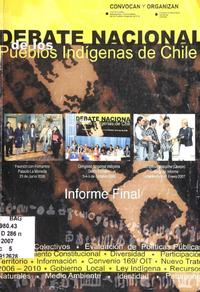 Debate nacional de los pueblos indígenas de Chile : informe final. [Santiago] : Gobierno de Chile, Conadi : Organizaciones Indigenas Urbanas, 2007?. 12 p. : il. ; 28 cm. .