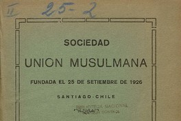 Estatutos / Sociedad Unión Musulmana. Santiago de Chile : Sociedad Unión Musulmana, 1926. Santiago de Chile : Empresa Editora Alwatan, 1926. 11, [14] páginas ; 19 cm. .