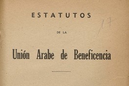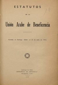 Estatutos / de la Unión Arabe de Beneficencia. Santiago : Impr. El Esfuerzo, 1935. 28 páginas ; 19 cm. .