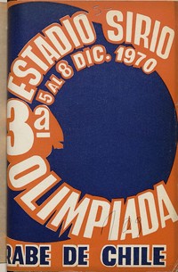 Tercera Olimpiada Árabe de Chile : [programa] / Club Deportivo Sirio. [Santiago de Chile] : El Club, 1970 (Santiago de Chile : Editorial Universitaria) 44 páginas ; 19 cm. .