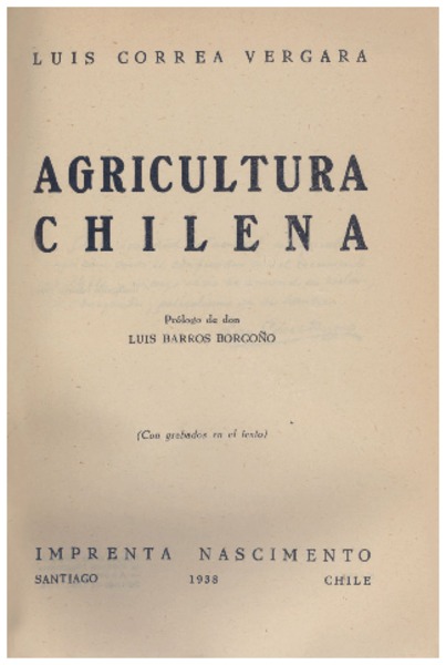 Agricultura chilena Luis Correa Vergara ; prólogo de Luis Barros Borgoño.