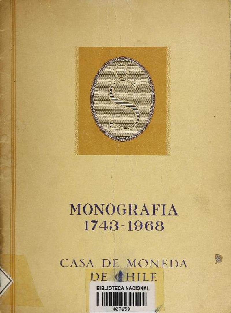 Monografía 1743-1968 Casa de Moneda de Chile.