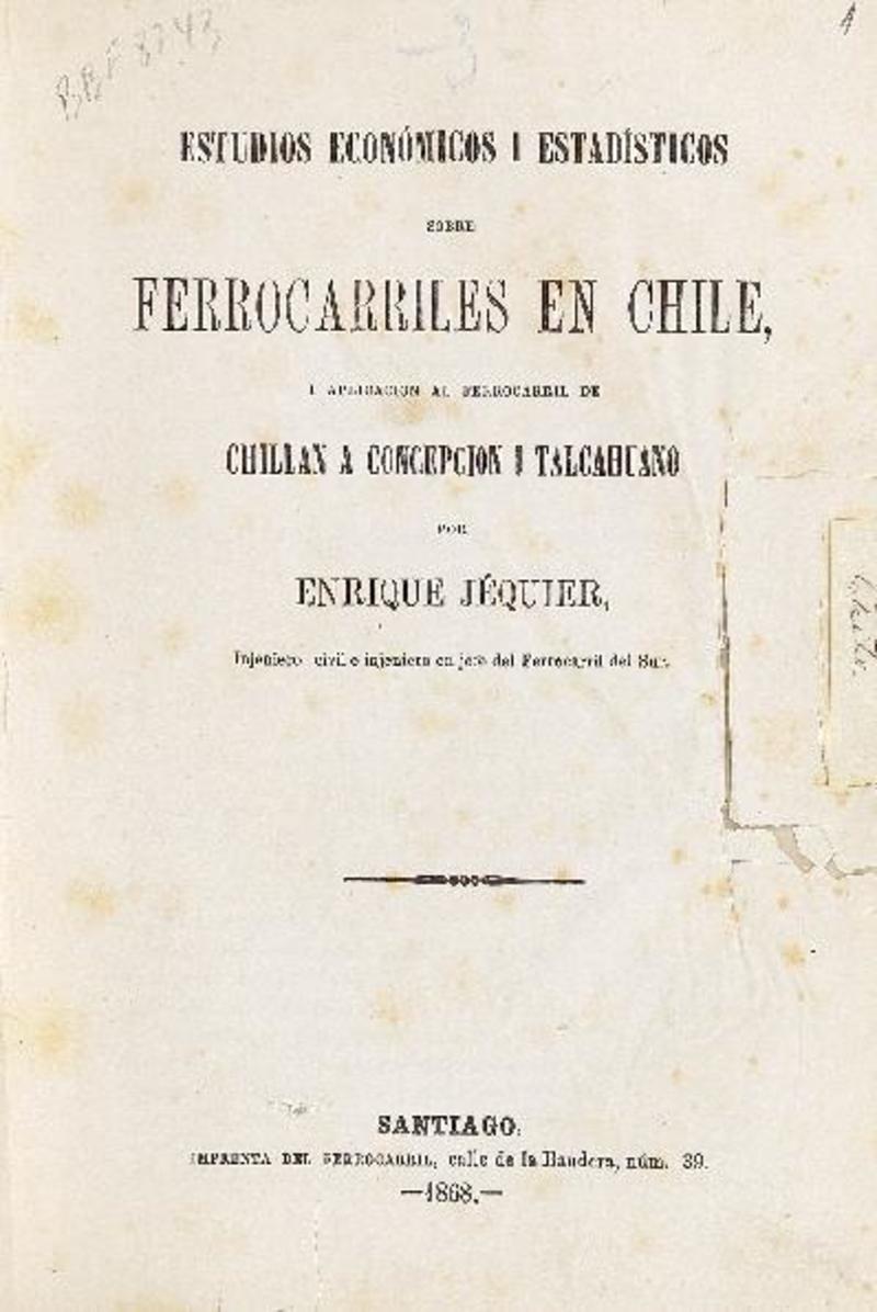 Estudios económicos i estadísticos sobre ferrocarriles en Chile i aplicaciónal ferrocarril de Chillán a Concepción i Talcahuano.