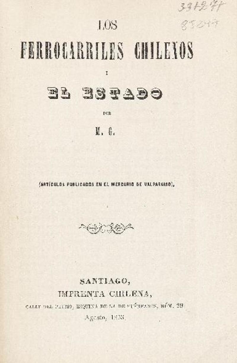 Los ferrocarriles chilenos i el estado : (artículos publicados en El Mercurio de Valparaíso) por Marcial González.