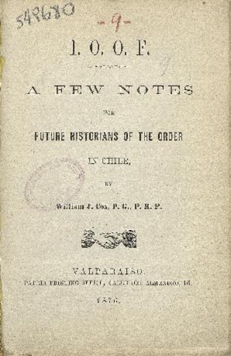 A few notes for future historian of the order in Chile by William J. Cox.