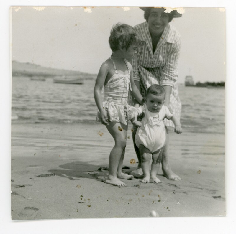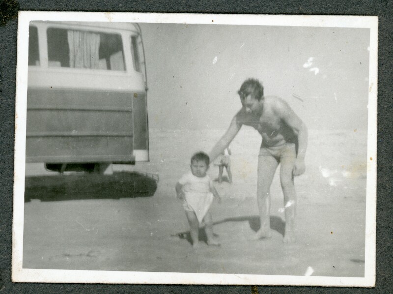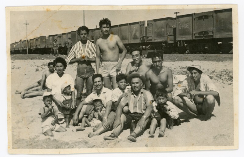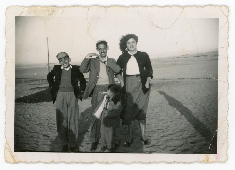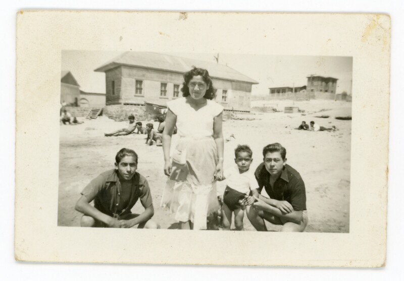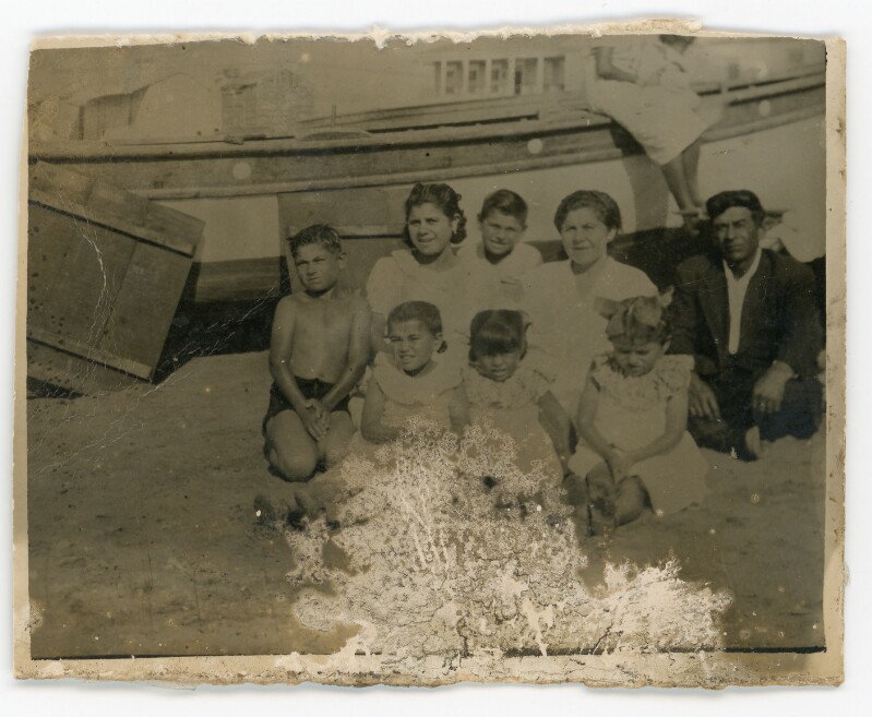[Retrato grupal mixto de paseo familiar a la playa] [Fotografía]