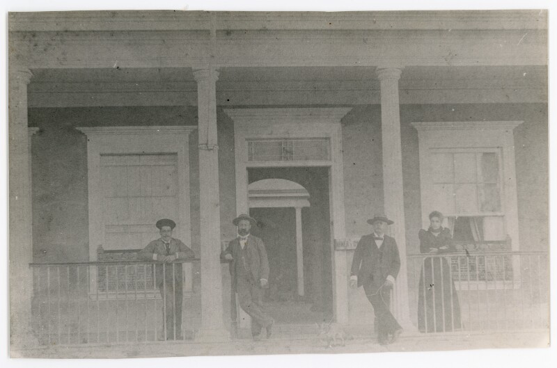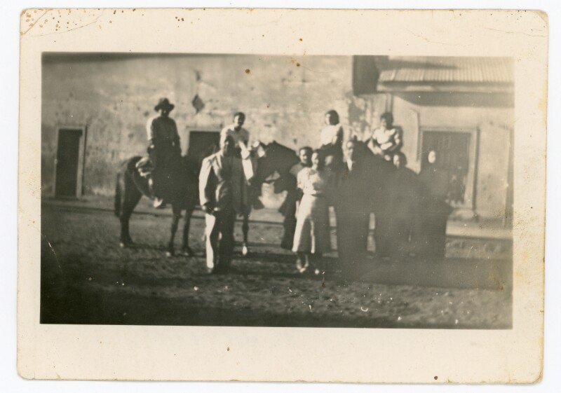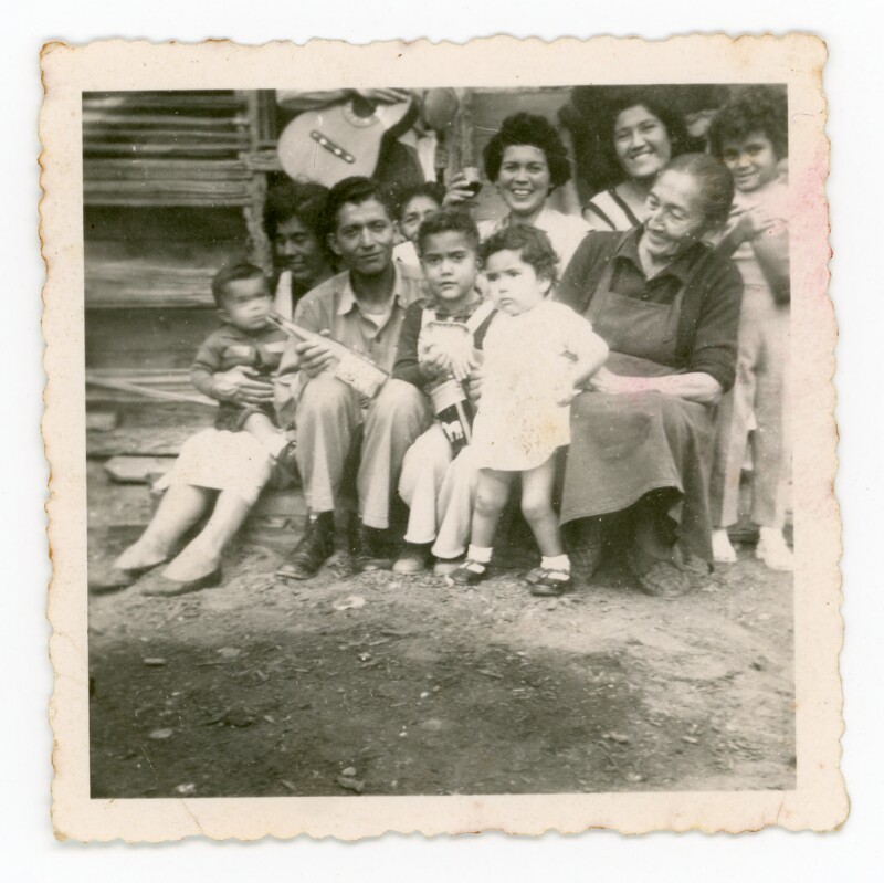 [Grupo de personas en el frontis de su casa] [Fotografía].