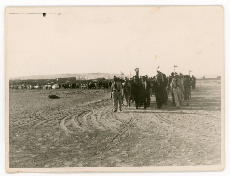 [Grupo de personas caminando en un funeral] [Fotografía].