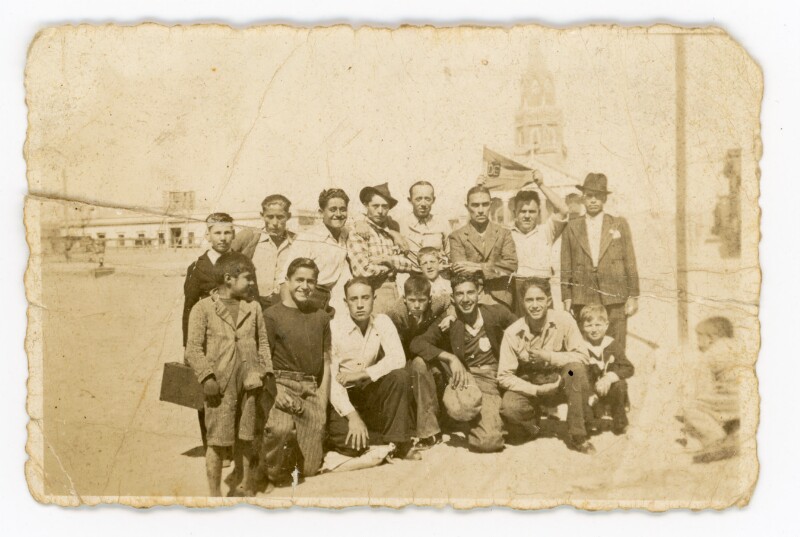 [Retratos de un grupo de amigos en la Playa Mansa] [Fotografía].