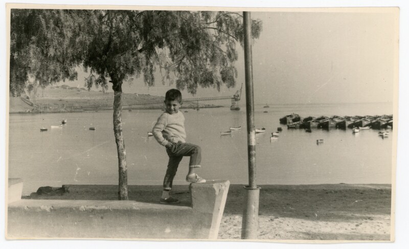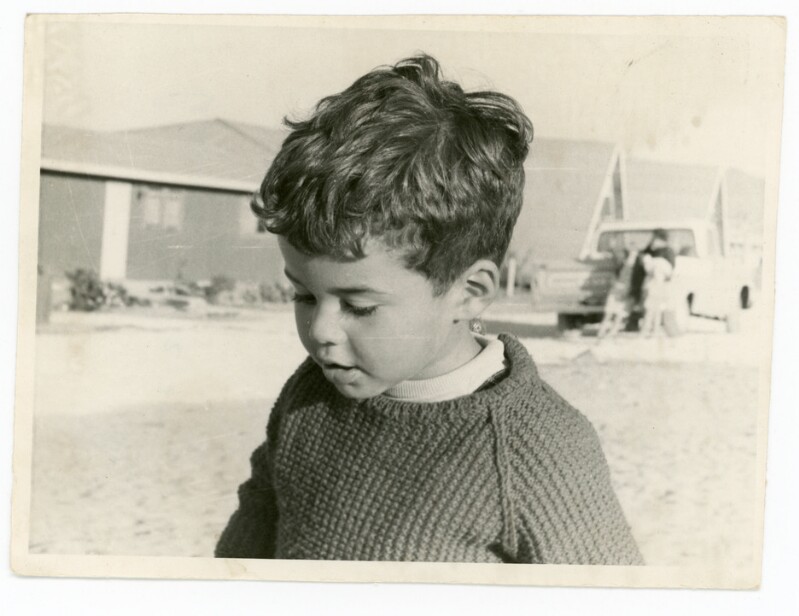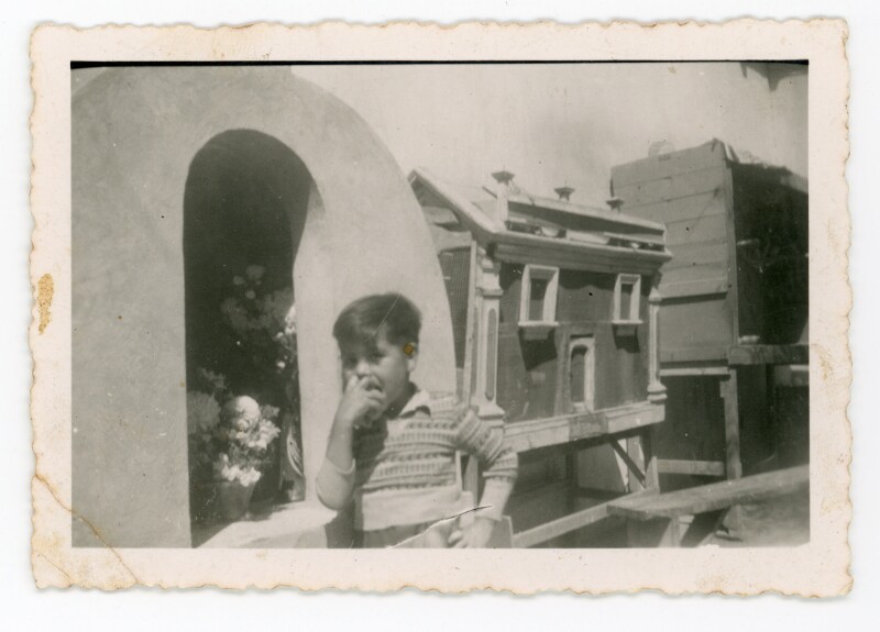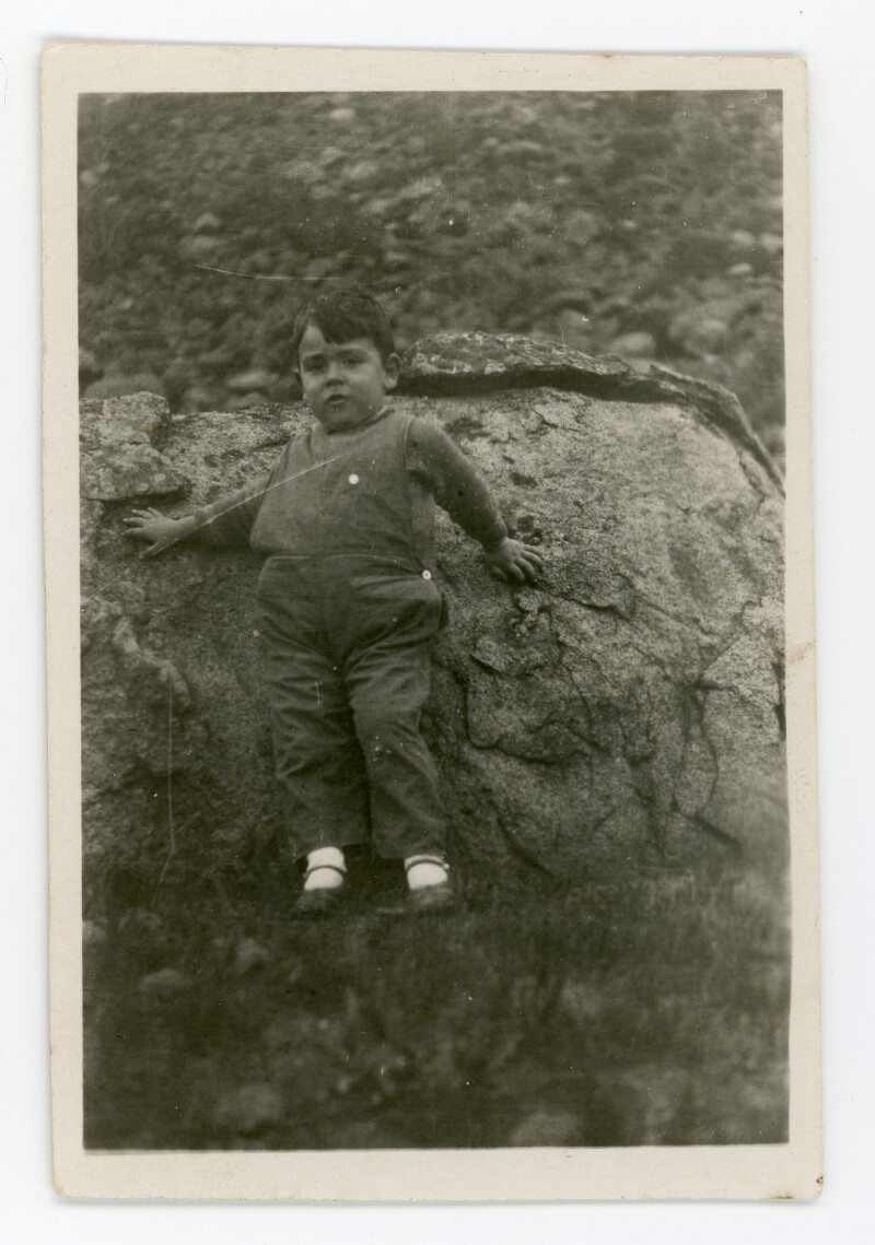 [Retrato individual de un niño apoyado en una gruta] [Fotografía].