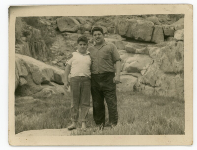 [Arcadio Gallardo junto a una pequeña niña] [Fotografía].