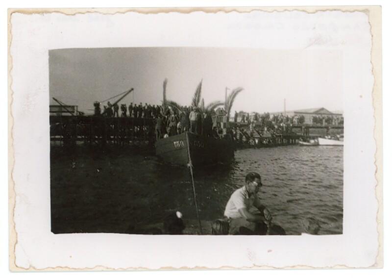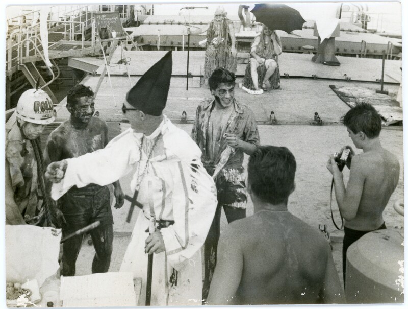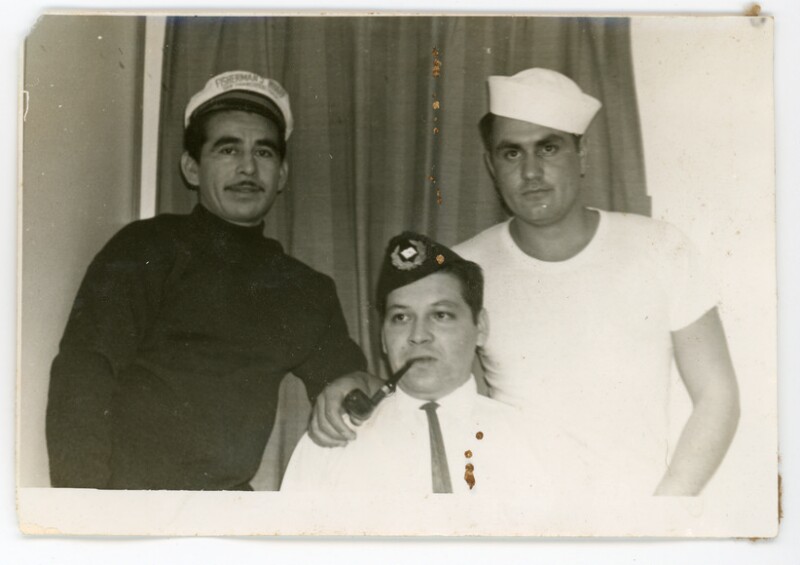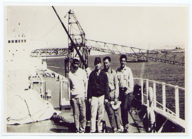[Grupo de hombres sobre la cubierta de un barco] [Fotografía].