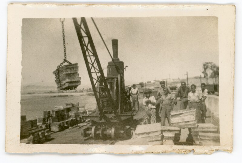 [Grupo de hombres trabajando en un embarque de Cobre] [Fotografía].