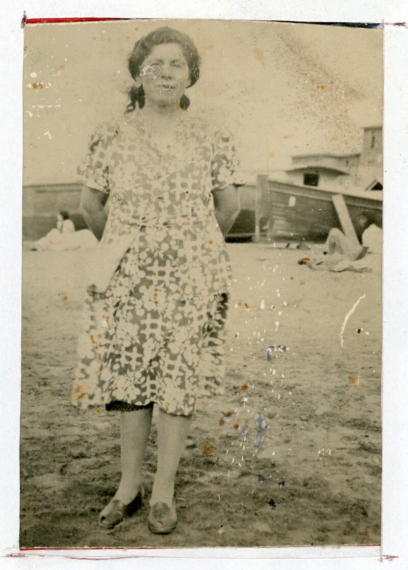 [Retratos de Dora Páez Morales en la playa] [Fotografía].