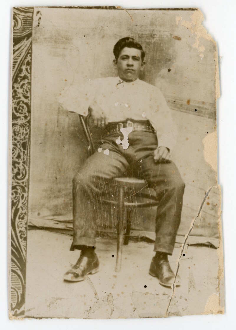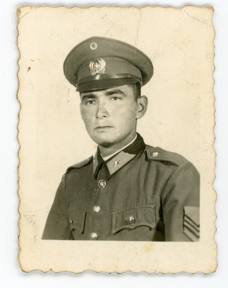 [Juan Gallardo vistiando su uniforme militar] [Fotografía].