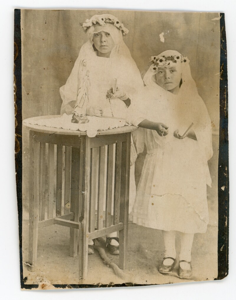 [Recuerdo de primera comunión de las hermanas Montes de Oca] [Fotografía].