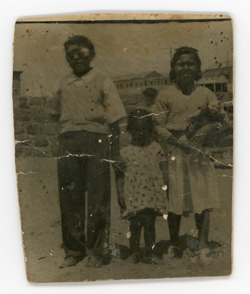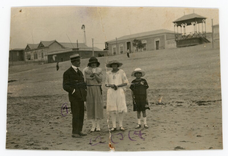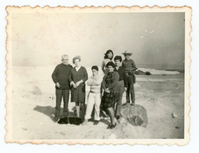 [Retrato mixto de un grupo familiar de paseo en playa Mansa] [Fotografía].