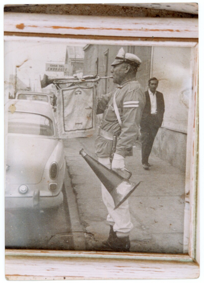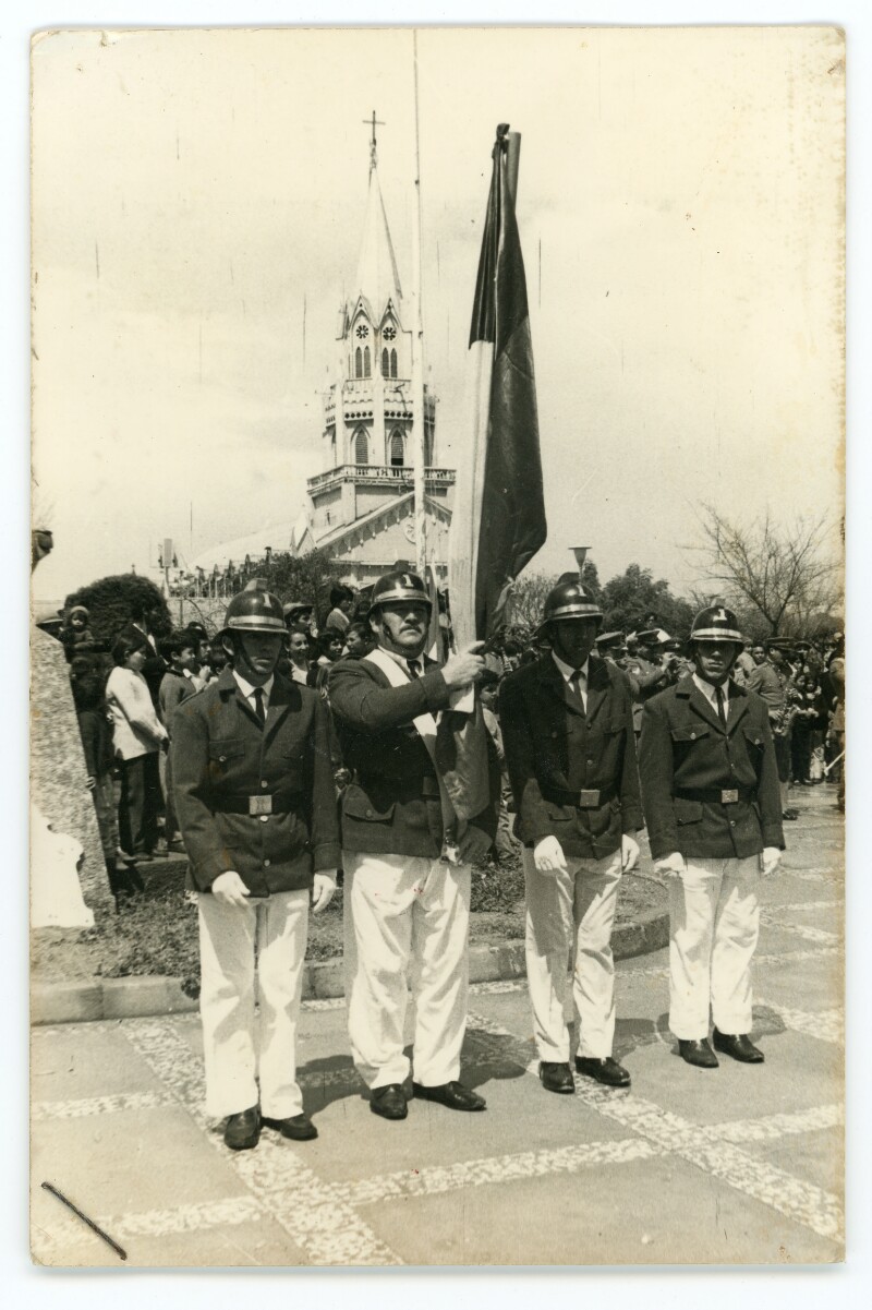 [Abanderado de bomberos en la plaza de Caldera] [fotografía].