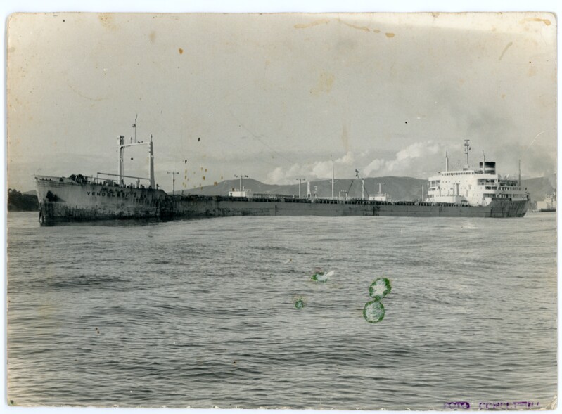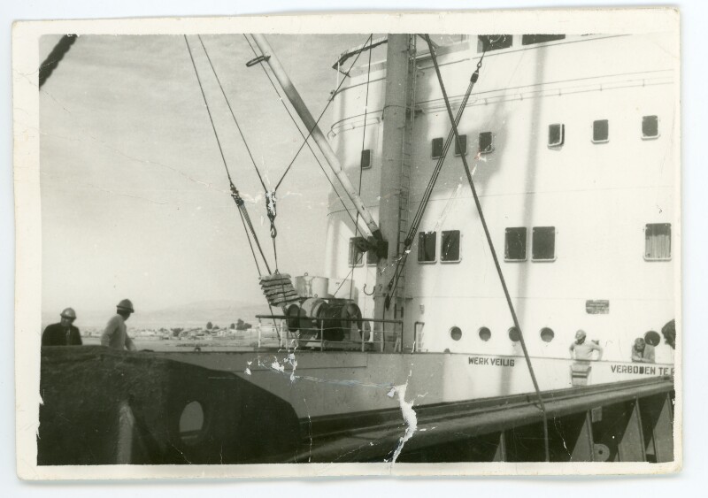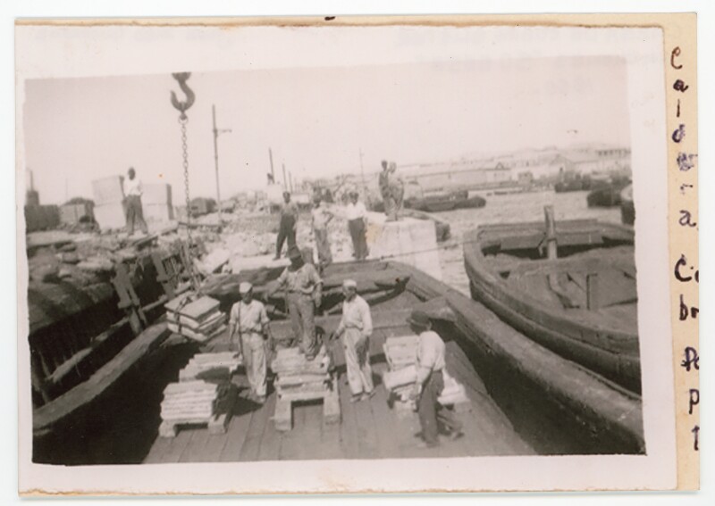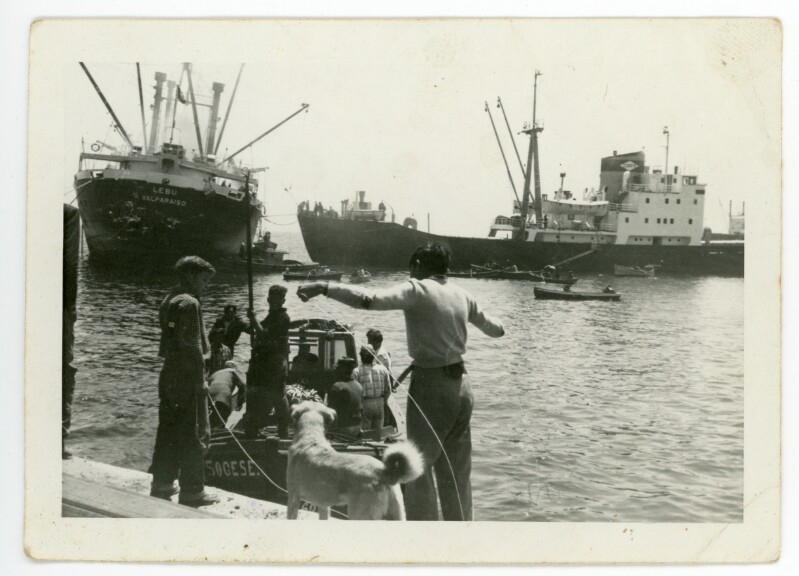 [Hombres efectuando labores de carga en la embarcación Lebu] [Fotografía].