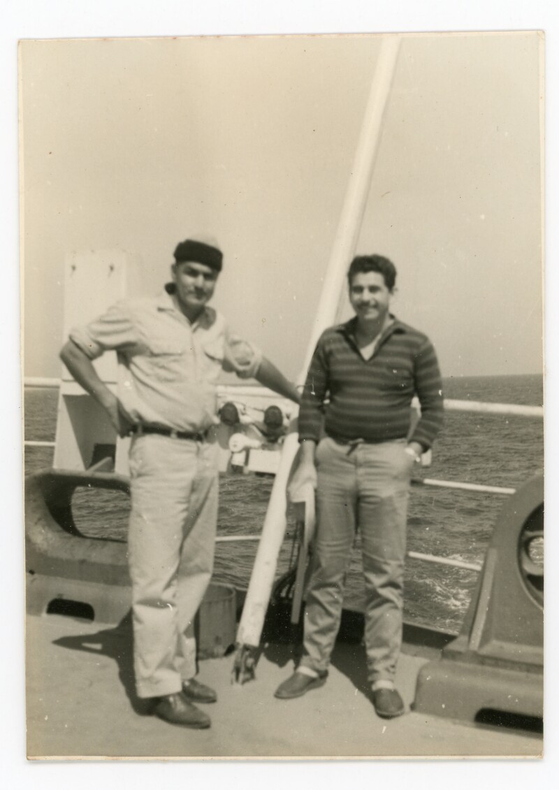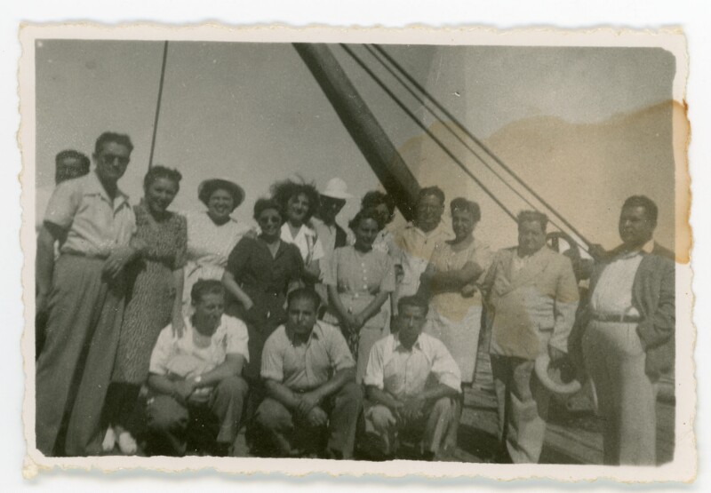[Grupo de amigos en la cubierta de un barco] [Fotografía].