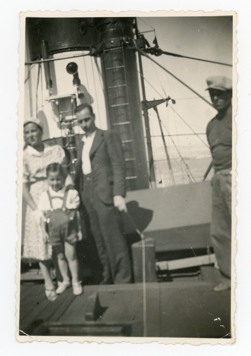 [Grupo familiar sobre la cubierta de un barco] [Fotografía].