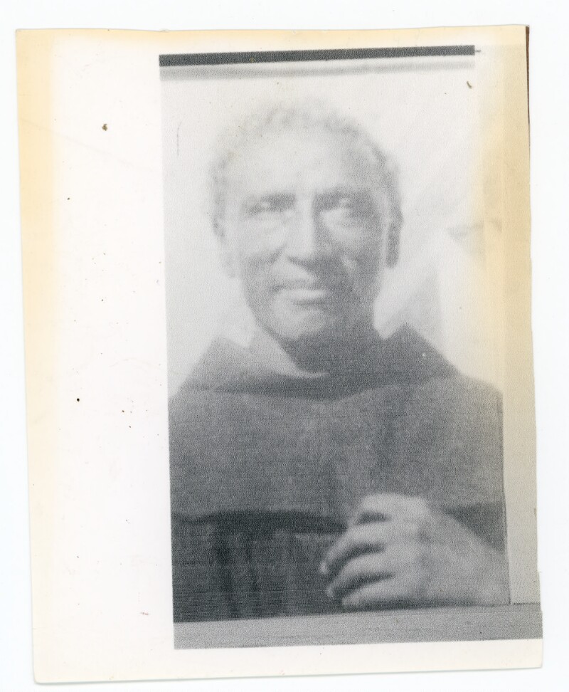 [Grupo de personas frente a la sepultura del "Padre Negro"] [Fotografía].