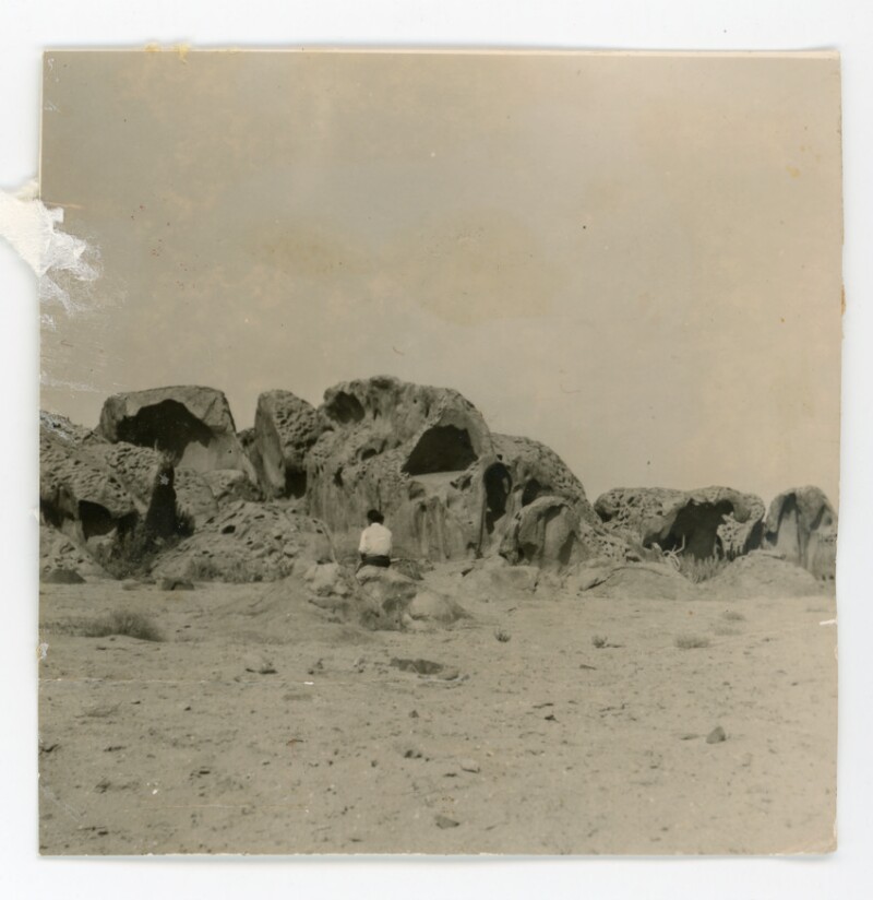 [Vista interior y exterior de la gruta del "Padre Negro"] [Fotografía].